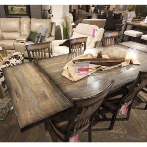 Set includes table and 6 chairs. Beautiful oak Amish dining set in Rustic Oak. Hannah Side Chairs with medium distressing.