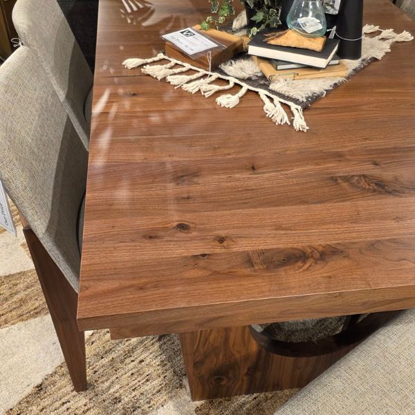 A thoughtfully curated dining set by our very own designers pairs a modern yet soft looking 60” square dining table...