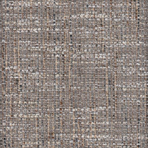 A slightly-curved sofa along the front accented with nailheads along the front base. Finished in a brown-grey fabric with espresso...
