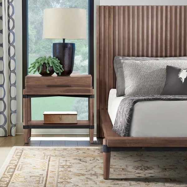 Make a refined statement in your home with this serene, sophisticated nightstand. Crafted from Poplar Solids and Walnut Veneers in...