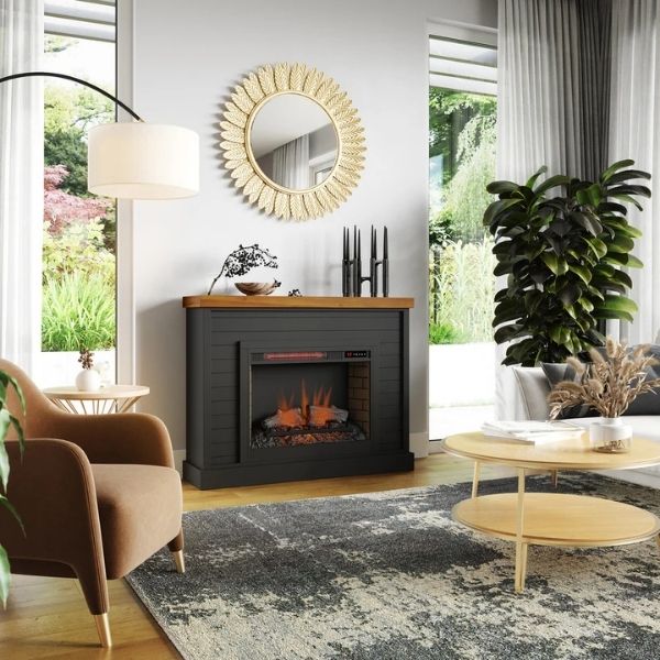 Description: This Fireplace Mantel combines coastal cottage charm with a touch of modern farmhouse flair. Its eye-catching Black and Barnwood...