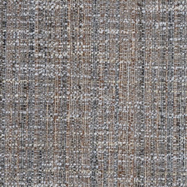 Pullover Back, banded arm, medium brown leg, no nailheads, finished in a brown-grey fabric.