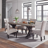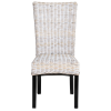 Woven wicker in a whitewash finish gives this Dining Chair a fresh, breezy look for formal and casual settings alike. Mahogany wood legs ground the airy design.