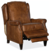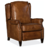 Traditional-looking recliner with Wingback Ears, Plush Back and Scroll Arms with Nail head accent. Cognac Handwipe Analine Top Grain Leather.
