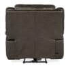 Top Grain Leather with Split with bustle back style; power recliner and power headrest; USB port and adjustable lumbar support.