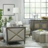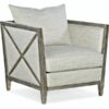 Sure to become a favorite place for refuge at the end of the day, this Lounge Chair is a striking silhouette with a classic X motif over fabric on the back and sides. The exposed wood frame and legs are finished in Quartz Grey, a light wood tone with areas of cool gray burnishing creating a subtle two-tone effect. With a loose pillow back, the Prim is upholstered in Encore Pearl Fabric, a performance fabric to resist stains and spills.