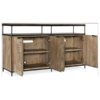Authentic with an artistic character, this Entertainment Console is crafted of Acacia Solid Wood in a light natural finish with antique bronze-colored metal trim. Featuring 4 doors with soft-close hinges and one adjustable shelf behind each pair of doors, the console has a ventilated back panel, FC705 3-plug electrical outlet and accommodates up to a 60-inch TV. Our TV consoles accommodate media components without disrupting functionality in an elegant mix of materials.