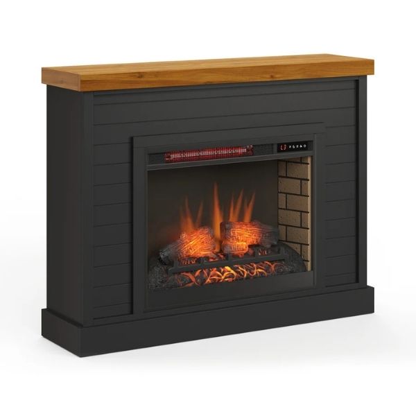 Description: This Fireplace Mantel combines coastal cottage charm with a touch of modern farmhouse flair. Its eye-catching Black and Barnwood finish refreshes any space, making it a standout piece in your home decor. Equipped with a 28″ fireplace insert, it warms spaces up to 400 sq ft, adding both warmth and ambiance.