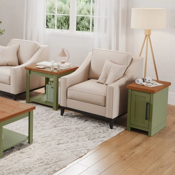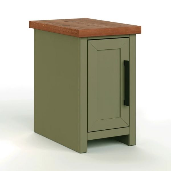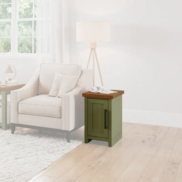 Enhance your living space with this chairside table, perfect for coastal-cottage or modern farmhouse decor. This table offers ample tall interior storage, ensuring your living room remains both stylish and organized. Its charming design adds a touch of rustic elegance to any room.