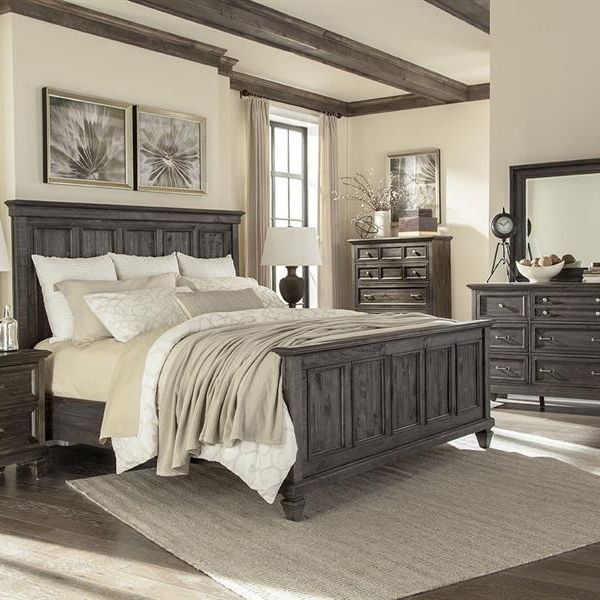 Its weathered charcoal finish and brushed pewter hardware mix effortlessly with graceful curves and soft details to create a look that is bold yet refreshing.