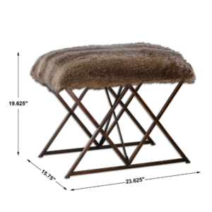 A beautifully designed bench featuring a perfectly padded, upholstered seat rested on a four-legged metal base with cross-bracing.