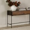 With a sleek sophisticated design, this console table emits rich hues from the solid mango wood’s medium and dark stains. Perfect for adding a welcoming addition to your front entry, this console’s two push drawers add versatile storage for everything you need whilst you’re running out the door.