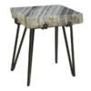 This accent table is anything but meek. Exposing the rough texture of its natural marble stone celebrates its raw beauty. This side table’s rough edge is set against a simple iron base.