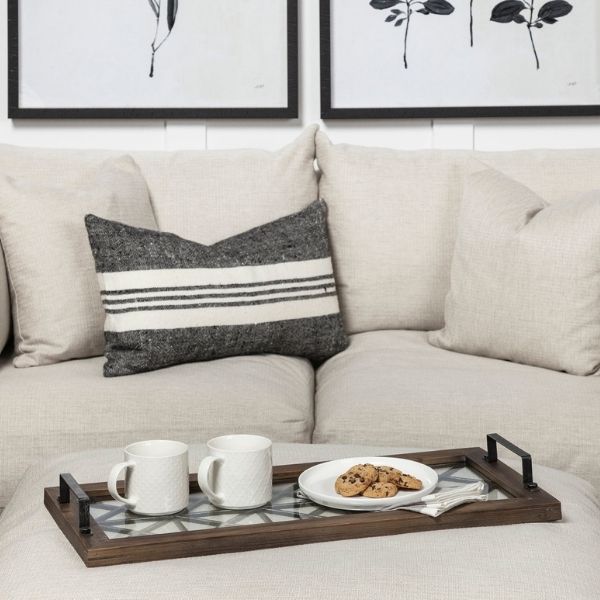 This tray is skillfully crafted from metal, glass, and wood, is a simplistic yet unique addition to your space that is sure to stand the test of time.