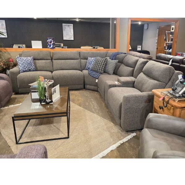 Modular six-piece sectional with Power Headrest, Power Footrest, Wireless Charging in the console and Extended Recline on the three power recliners.