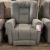 A rounded barrel back recliner with heavily scaled dollhead arms and are trimmed in round welt as they traditionally should be. They flank the desirable pad-over-chaise constructed seat cushion. But the ‘Pie’ce de re’sistance’ is the generously filled soft and supple back cushion applied to a beautifully shaped frame. The back utilizes an upholstery treatment similar to the seat so that both provide the same cradling comfort. The comfort can be optimized by adding the power controlled adjustable headrest. No more extra throw pillow to get your head in the perfect position….now it’s right at your fingertips.