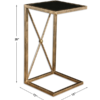 The perfect pull up table featuring a classic black and gold color combination in lightly antiqued gold iron with a black tempered glass top.